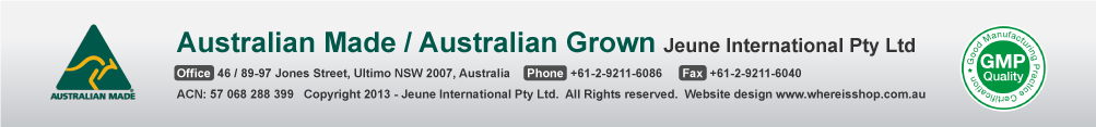 Established in 1995, Jeune has developed to be one of the fastest growing manufacturer and supplier of skin care and health care products in Australia, and has become a major force in innovative product concept development and serving its customers throughout Autralia and overseas. All “Jeune” products are made in Australia T.G.A standards and G.M.P specifications.